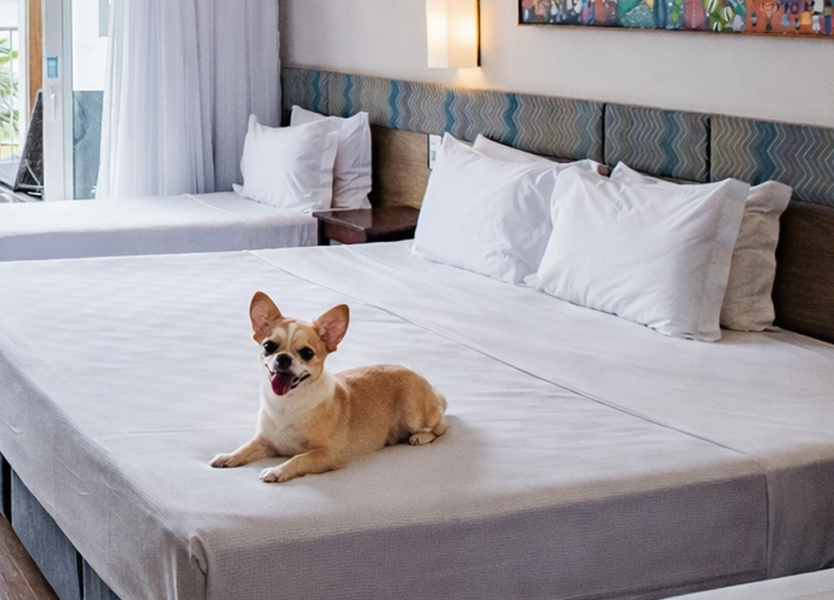 Durante a hospedagem, o resort oferece um kit especial para seu amigo de quatro patas, composto por: